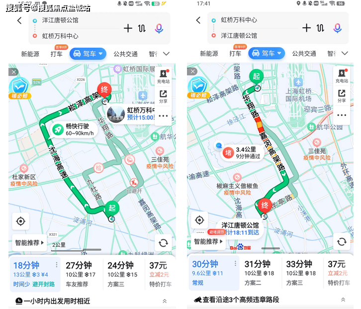我截了一张不堵车,一张上下班高峰的百度地图导航,供大家参考: