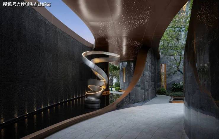 长约80米的沿街迎宾门仪,宛若星级酒店般的气场;交错的弧形景墙和水景雕塑柔化与城市的界限,更添了份大宅的隐贵感;璀璨的星空顶熠熠生辉,迎接每位业主归家......