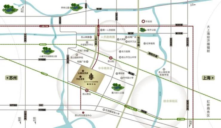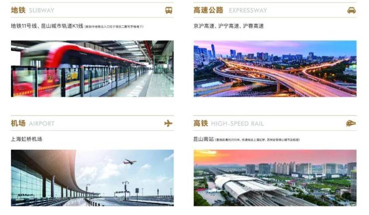 高铁:背靠昆山南站,直线距离约200米,乘坐高铁约18分钟抵达上海虹桥,约10分钟抵达苏州高铁园区。