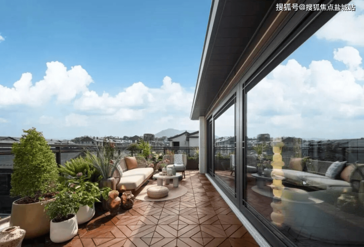而溪映听庐的上叠,也有空间非常阔绰的阳台+露台,清晨站在露台上,直面群山的翠绿和4000个/立方米的负氧离子。