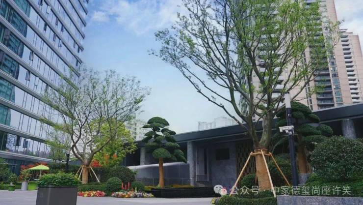每幢楼门口都种植了罗汉松,从日本飘洋过海而来,每一棵都需要数十年的细致栽培与沉淀,代言岁月如金。