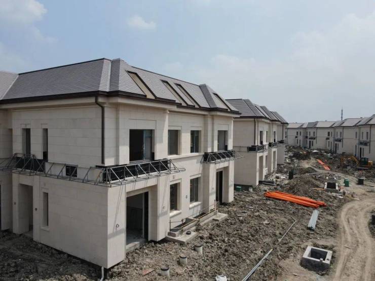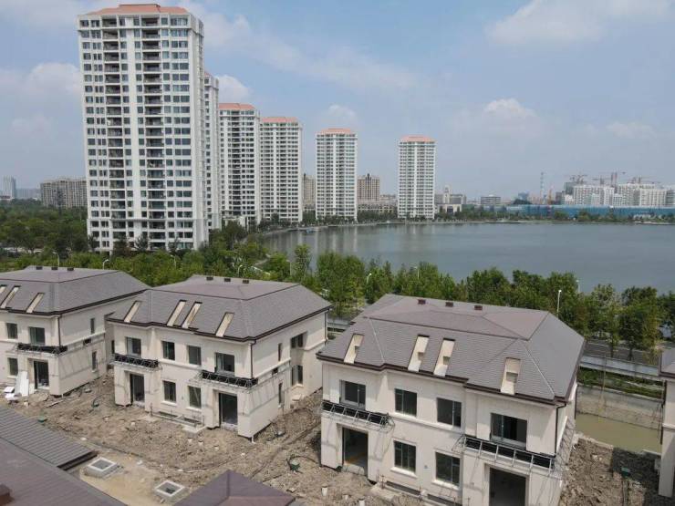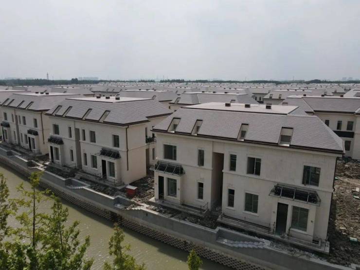 从上面的项目实景图可以看出,每一排别墅前都有一条渠道,规划引入水系,可以停游艇,虽然目前看上去并不出彩,那是后期工程还没有结束,等配套施设完全到位,必将使人眼前一亮。