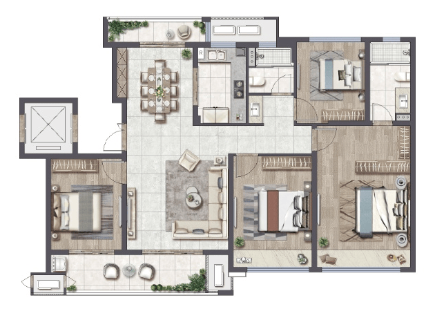 建面约135㎡阳光四房,更是做到四开间三卧朝南,约14.4米南向面宽,将绍兴人钟爱的“满屋阳光”淋漓呈现。
