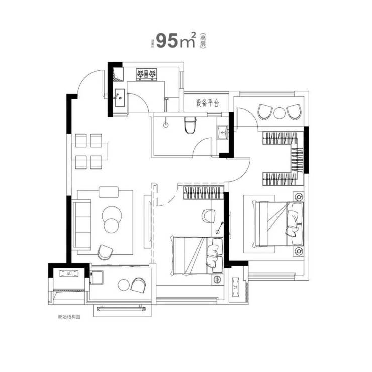 建面约95㎡高层:空间利用率高的动静分类T字户型,主卧设计为奢阔套房,拥有大飘窗和步入式衣帽间,带来极佳的居住体验。