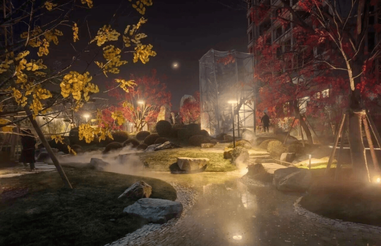 项目突破常规景观规划,通过精妙微地形改造,雕琢出真正沉浸式的山谷园林秘境,并以五进归家动线为脉络层层铺展自然与仪式的双重逸趣。