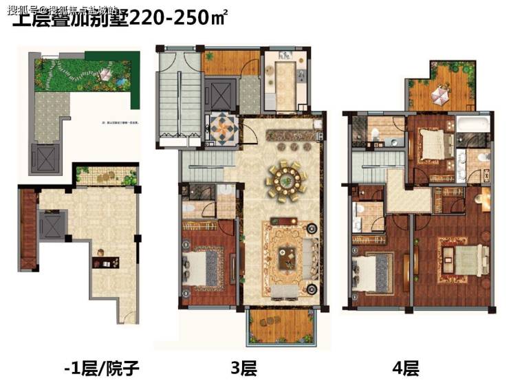 产品类型:上叠210平左右总价540万起;下叠260-290平总价640万起总高4层