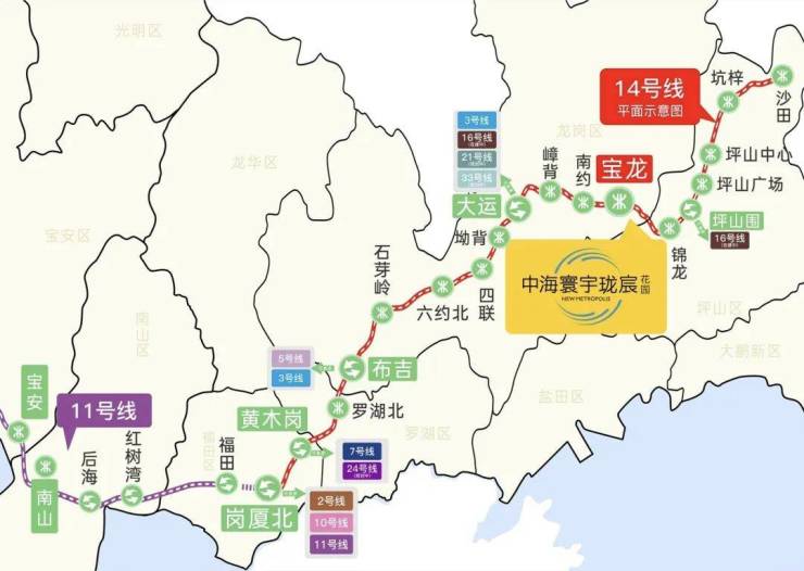 时速最高达120km/h的地铁14号快线已开通,宝龙站三站大运,10站抵福田。家楼下的公交始末站,东部过境、坪盐通道、南坪快速等多条高速路免费通达全城程,东部高铁枢纽半小时大湾区都市圈。