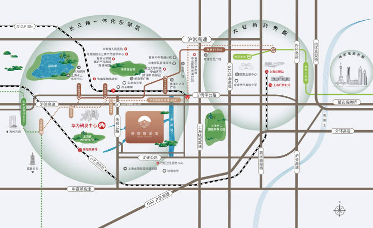 比邻华为全球最大研发中心,与北斗西虹桥基地、市西软件信息园、西岑科创中心、长三角数据消费园等共享万亿级产业辐射力