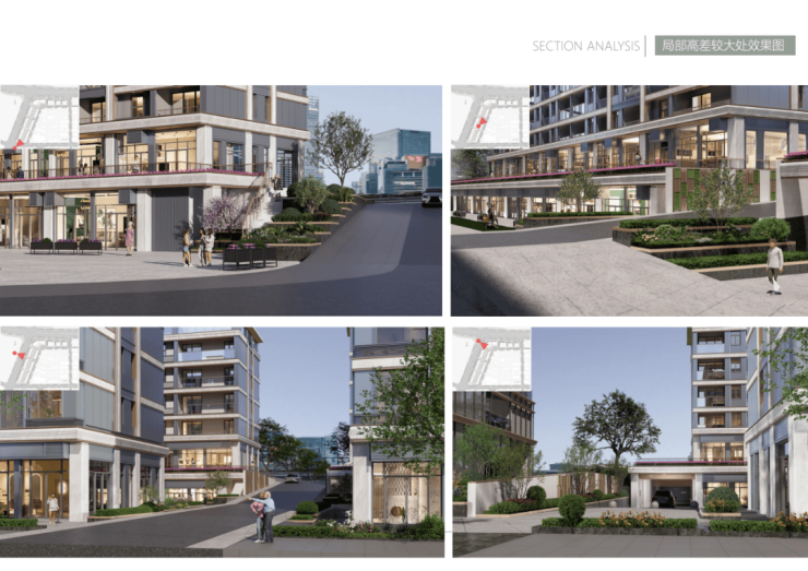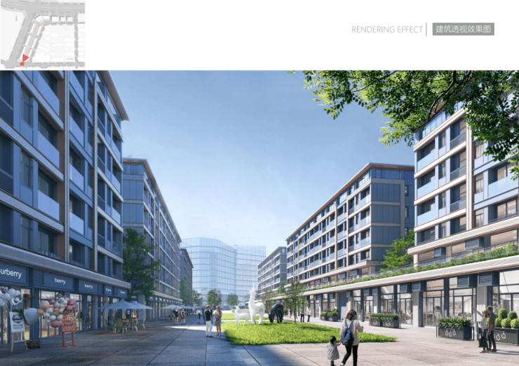 在商业内街打造以街道空间为主轴的景观区,利用建筑的错落布置及场地高差,立体的空间层次与通廊,采用传统与现代相结合的造景手法营造精心别致的园林氛围,形成步移景移、景观丰富、空间多变的巷道空间。