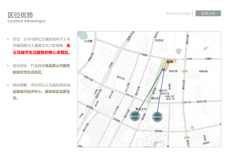 1. 根据基地现状及周边的环境,建设匹配现代义乌的建筑形象,和周边建筑达到空间共融。