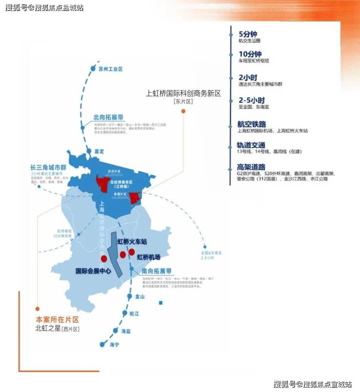 北虹桥作为虹桥国际开放枢纽的创新承载区,兼具“长三角,大虹桥”的双重区位优势,将承载虹桥国际中央商务区主导功能,成为链接辐射长三角的创新经济集聚区、中央商务配套区和高品质国际化社区。“上虹桥·城市更新区”项目围绕“开放北虹桥,创新领航地"总体定位,以承载虹桥商务区主导功能、链接辐射长三角为方向,聚焦打造创新经济集聚区、中央商务配套区和高品质国际化社区,引领赋能虹桥国际开放枢纽北向拓展带发展。(数据来源《上虹桥·城市更新区规划发布》)● 交通与基础设施建设: