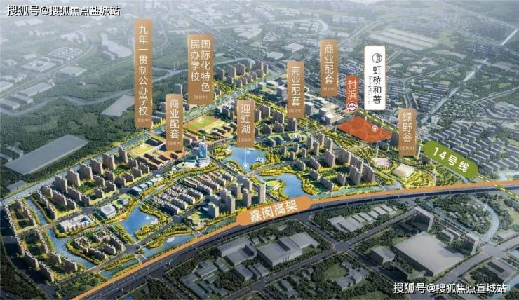② 本项目西侧规划商业约1.4万方、南侧社区中心约1.4万方(含菜场约2100㎡、运动中心约2600㎡),且包含“人民坊”示范项目。将会打造成为江桥的核心商业之一。教育资源丰富、未来将引进国际化特色民办学校(规划中),同时规划了九年一贯制公办学校,家门口即可享受全龄段优质教育资源。约1.2km绿野谷(规划中)、迎虹湖(规划中)连接U型廊与一字川,构建起滨水城市界面。繁华与滨水同赏,重著国际湖居森活新样板。