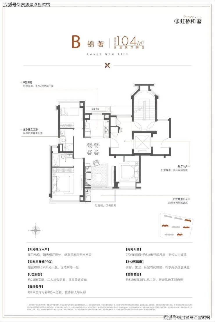 从户型图就能看到,这个房型是南向大面宽的设计,三开间面宽达到了约10.3米,赋予居所大气磅礴的空间感与层次感。百平米的不将就三房,实现房间数量及空间尺度的均好平衡,保证一家人舒适相处又各有天地,可以满足两口之家的改善起步,三口之家的其乐融融,三代同堂的多人口居住需要。