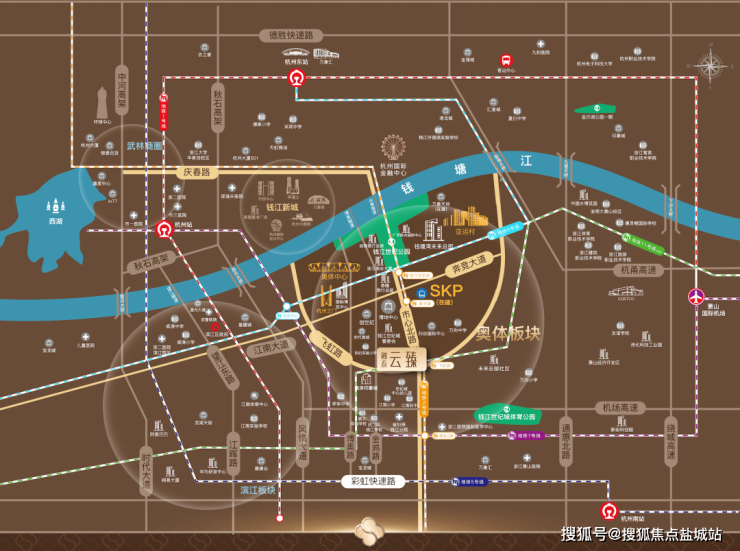 本案位于杭州萧山钱江世纪城奥体板块,与钱江新城合称“杭州CBD双核”,集合板块内优质配套资源,繁华触手可及。项目傲领钱江世纪城奥体核芯,东临市心北路,南侧飞虹路,坐拥“2横3纵3隧道4铁”交通便利,高效通达长三角及世界各大重要城市。