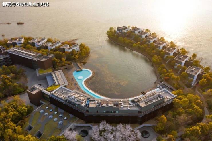 音昱水中天坐落在阳澄湖畔,整个区域就像一座长长的岛,超过一公里的距离,两侧都是湖面,可谓“宛在水中央”,它离城市很近,却又好像很远,明明20分钟之外的世界是喧闹与嘈杂,这里却一派空灵姿态。其实,距离苏州最繁华的园区就20分钟车程,离上海也不过一小时。