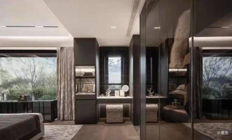 对于卧室而言,常规的尺度延扩,不足以称为迭新。映江润府,103边套户型,引入了千万级以上豪宅之中才能够拥有的270°环幕飘窗设计,实现了极致的采光和观景