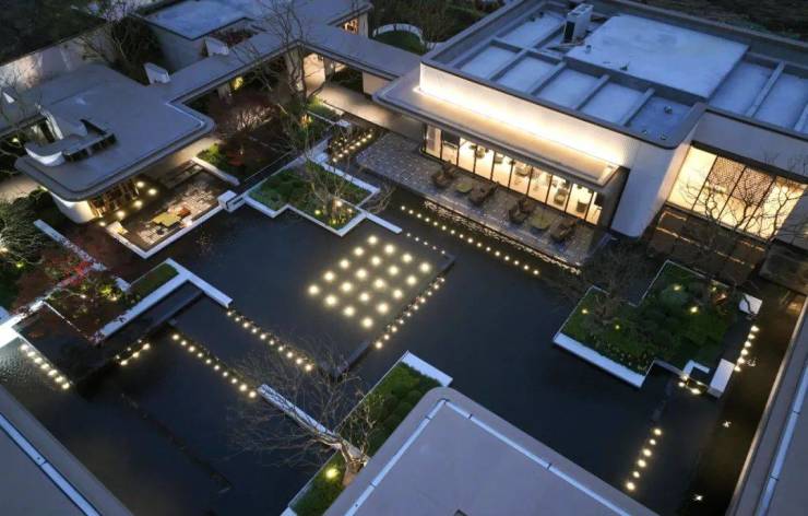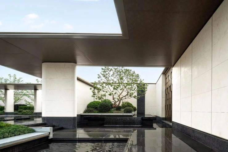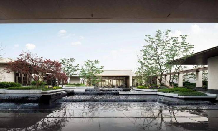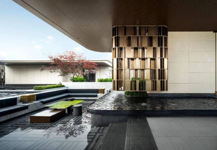 · 四重隐境水院:风雅会客厅出来经过风雨连廊区连接的就是项目售楼处,经过风雨连廊区的时候会看到项目打造的约650平米纯净自然的水域界面,楼台与水瀑交融,享受回家的仪式感。通透的艺术廊道,彰显了以人为本的设计理念,既能遮风挡雨,也可以从容漫步,整个无界水院采用了水系堆叠,层层变换,错落有致,美不胜收!