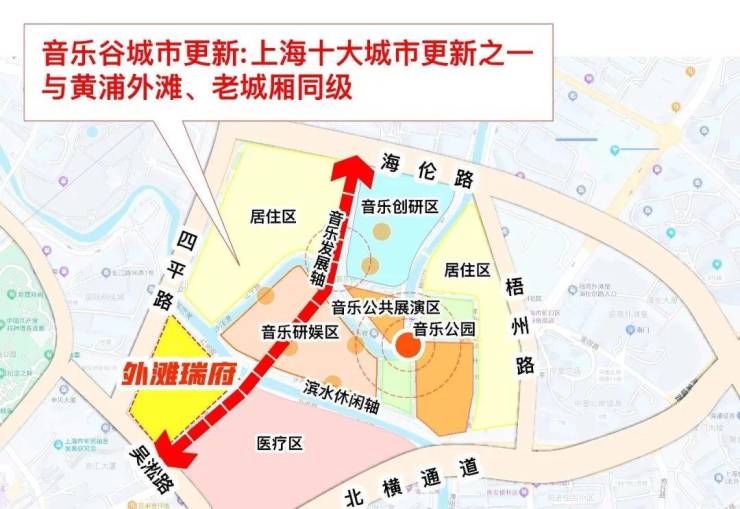 「外滩瑞府」隔壁的“音乐谷“城市更新区域,是上海十大城市更新重要单元之一,和黄浦外滩、老城厢同级。未来这里将打造成“ 东方百老汇 ”,成为上海最in的文艺潮流地标。