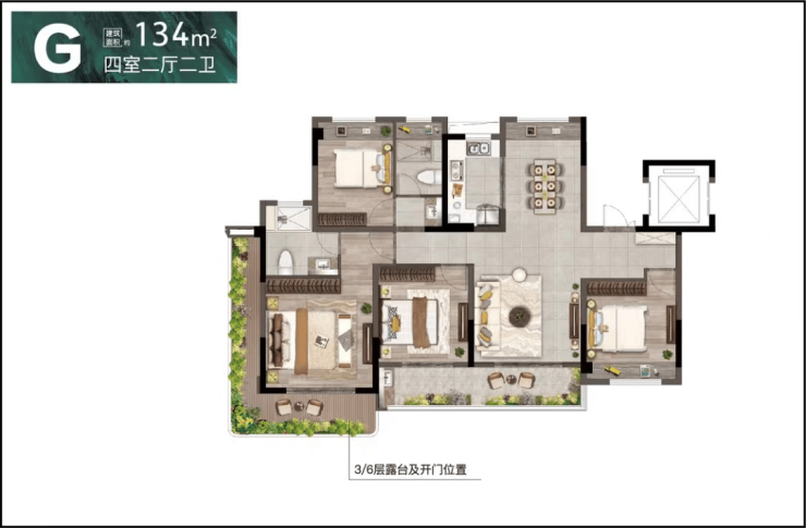 建面约134㎡,4房2厅2卫