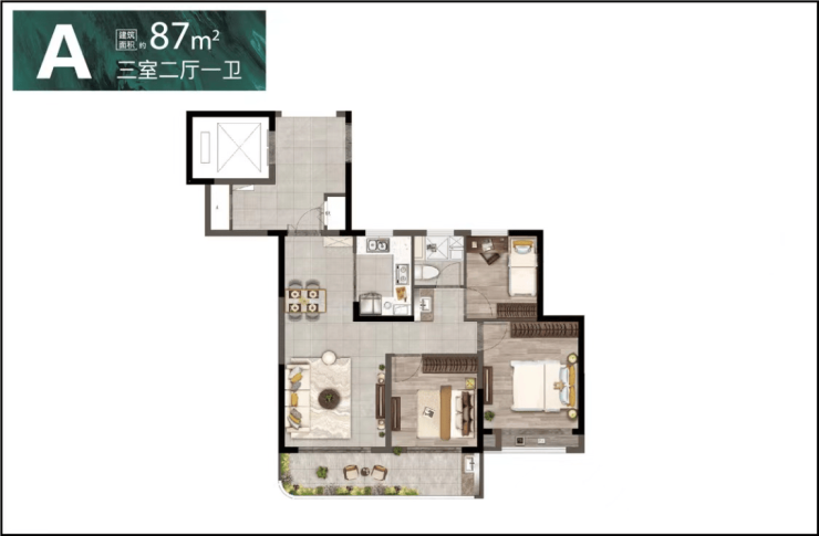 建面约87㎡,3房2厅1卫