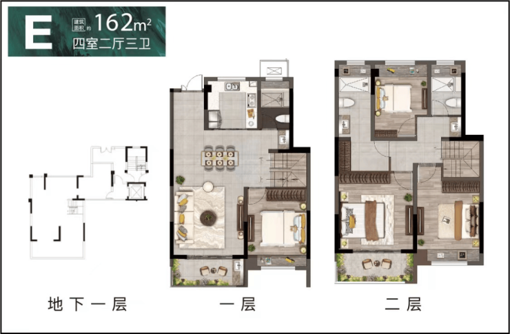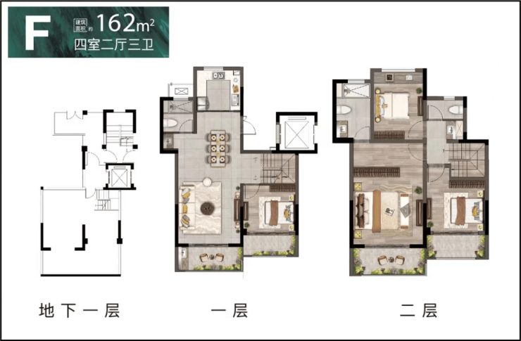 建面约162㎡,4房2厅3卫