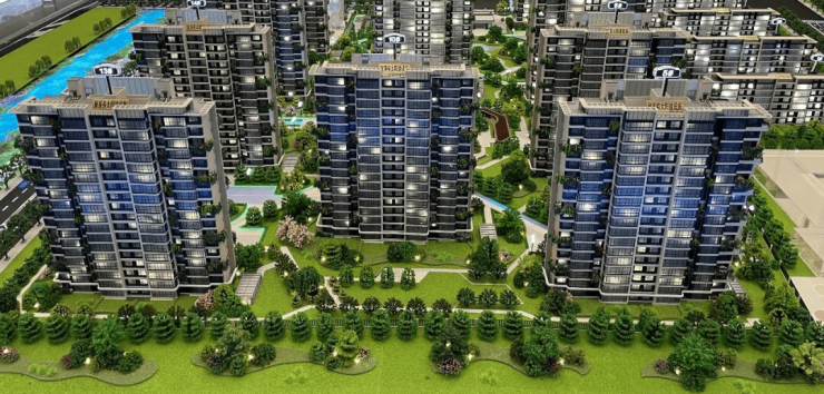 韵和星辰三面环水,整个小区共16栋楼,规划有12栋18层高层和4栋5-7层洋房。