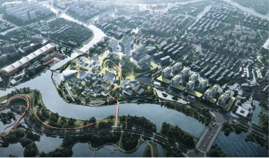 菉葭站TOD项目是陆家在提升承载能级、拓展发展空间上的“硬功夫”,打造“一岛一仓一园”,即菉溪岛、陆家仓、菉葭园,建设带动老镇区发展的核心综合体和多维度多层次的全慢行体验区,形成城水共生、站城一体的天空花园。