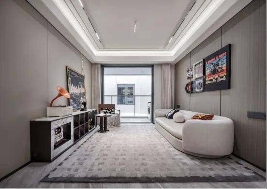 餐厅区域放置一个餐边柜,同样选用了雪山飞狐奢石做透光台面设计,餐边柜在收纳储物方面具有显著作用。