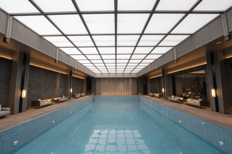 350样板由CCD郑忠主创,宛如迈入城市里的空中“绿洲”,除了两大样板房,建发·缦云还打开了会所空间,地下大堂、休憩区、泳池区、瑜伽室、茶室等空间,以相得益彰的简练与雅奢,互为衬映的尺度与格调,带来一场东方优雅气场的仪式示范。