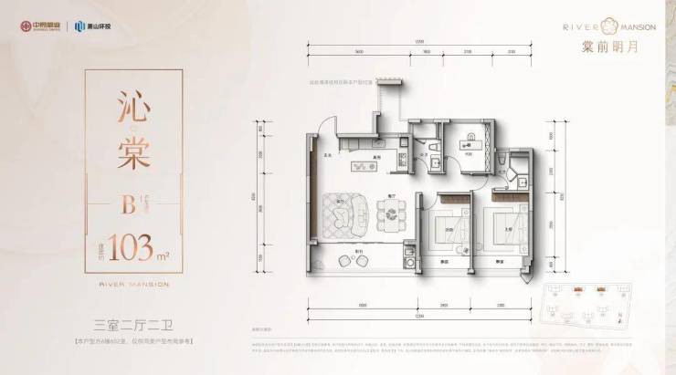 建面约103方三房两卫: