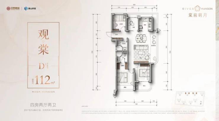 建面约112方四房两卫: