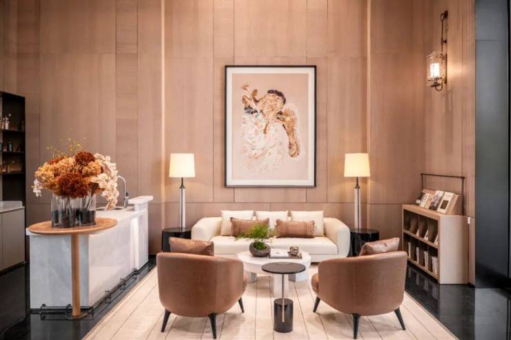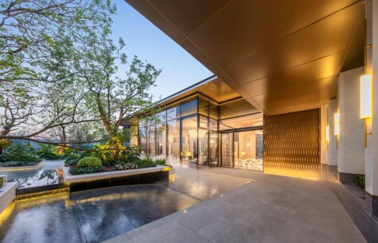 约50m宽的迎宾楼如城市界面的优雅屏风,挑高约8.8m的酒店式大堂以光影为笔,为归家写下第一重仪式感!只需一眼便将高门大宅的不凡气度展现的淋漓尽致!