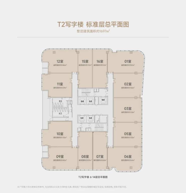 T2 写字楼:整层约1700㎡