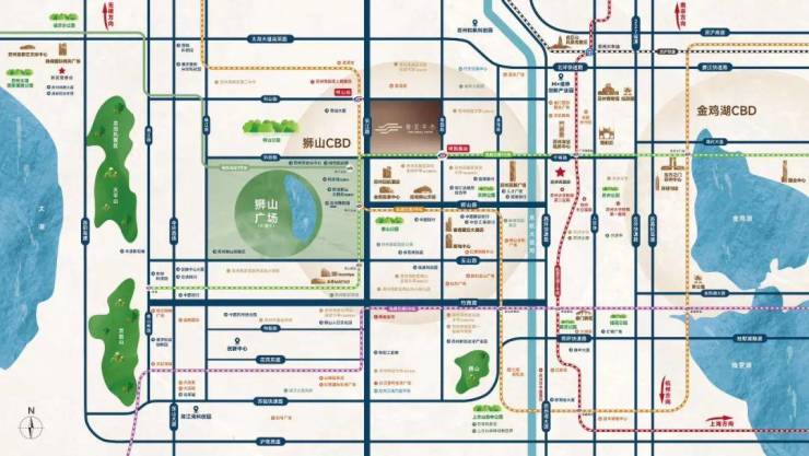 📎 这里,也是人文宜居新城区,狮山、何山等6座山体与大运河、胥江等水系交汇,融入繁华CBD;苏州博物馆西馆等文化建筑群坐落其中,塑造兼具国际都会及艺术山水的城区新气质。