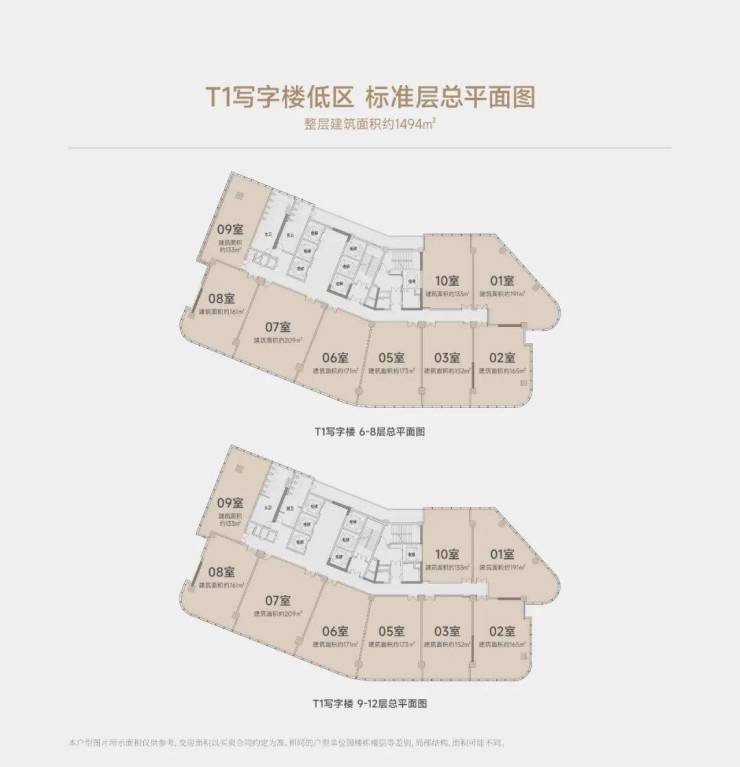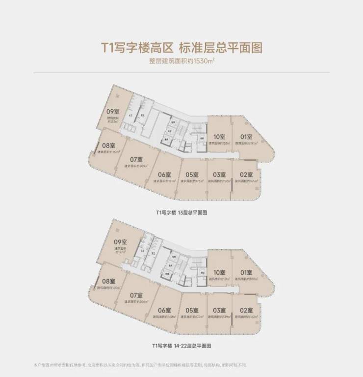 T1写字楼:整层约1500㎡