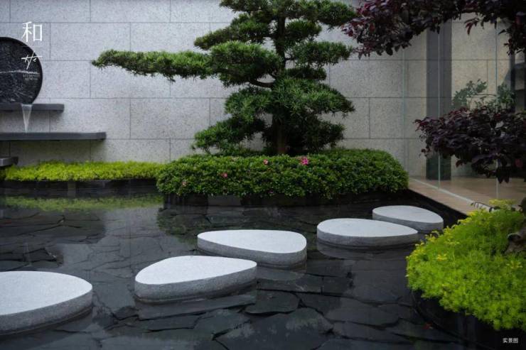 园林景观汲取中式传统园林与东方建筑底蕴,取自珠宝之形意之美,又归于自然的造景艺术,营造一方可望、可行、可游、可居的园林逸境。