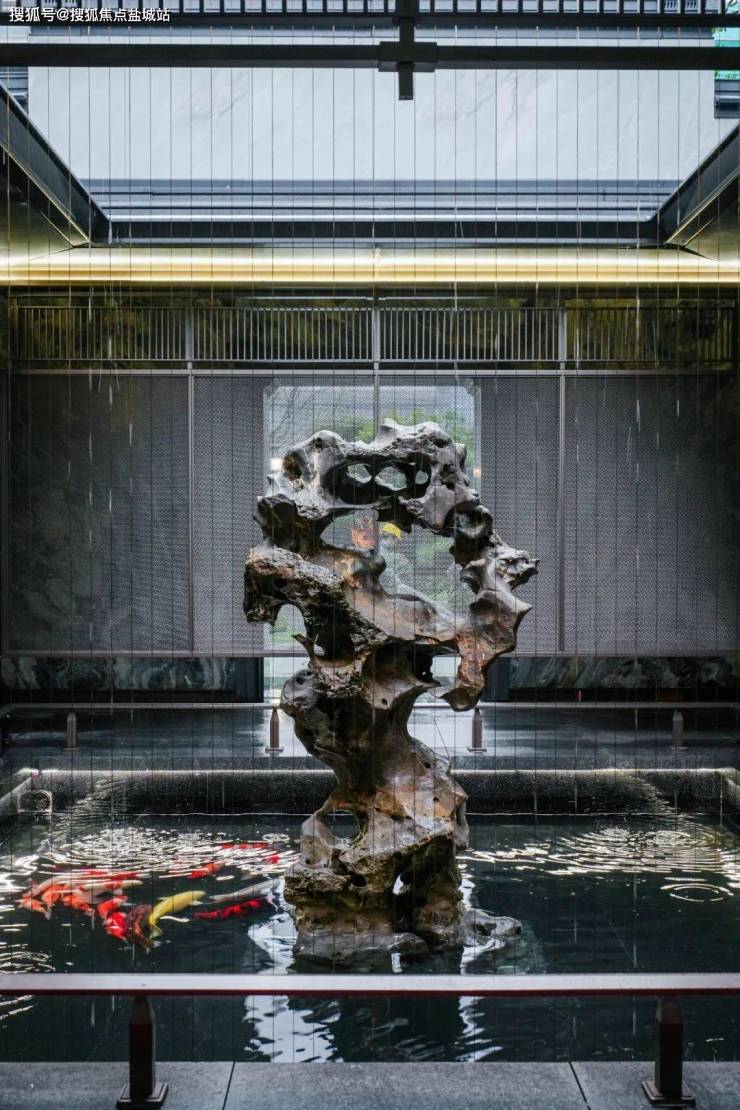 久映颂月府占地面积约1万㎡,体量虽然不算大,公区用材却尤为考究,园区目之所及用了大量奢石、名树。