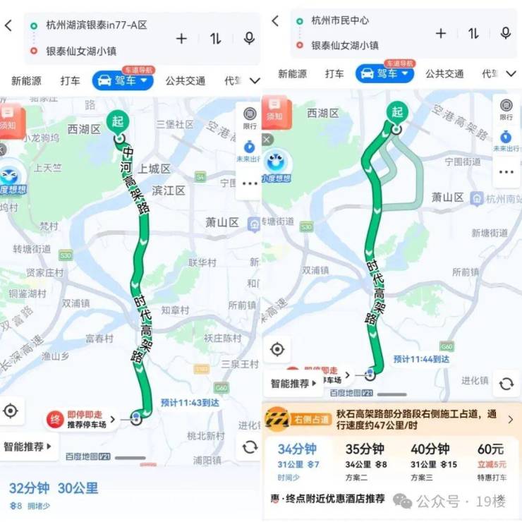 到湘湖不到20分钟车程,到西湖、钱新、滨江等也仅30多分钟(数据来源:百度地图)