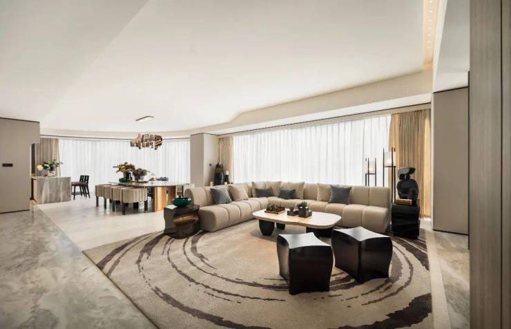 同时打破固有模块化布局,将客厅、餐厅、书房、阳台整体打造成联通又可随意调整的百变空间,让都市新贵无拘的想法能够一一实现。