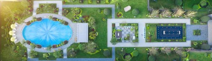 一池蓝钻泳池,于园林深处波光荡漾,水面如镜,映着天空的心情,也映出人的轻盈呼吸。