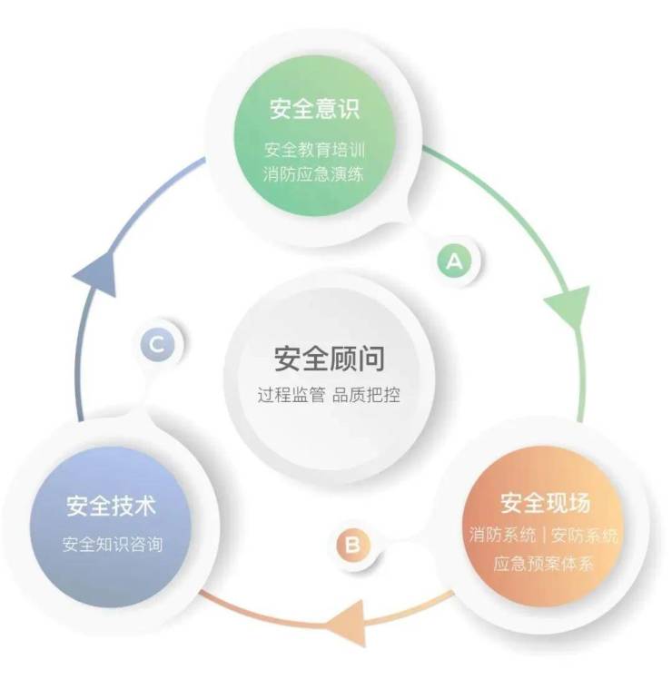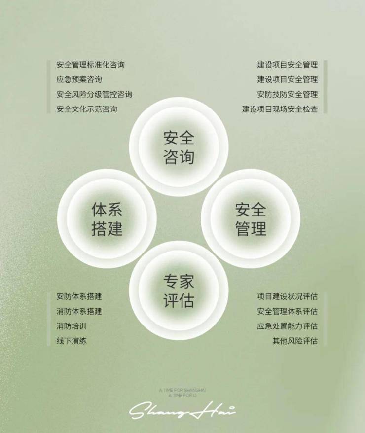在安全咨询方面,为项目的安全生产建设提供全方位的安全风险管控和应急预案,进行高要求高标准的把控,并组织企业和工程团队开展安全文化建设活动;在安全管理方面,深入施工现场的每一个环节检查管理,保证现场安防和消防的工作;在体系搭建方面,定期对社区物业人员进行消防培训和线下演练,确保在实际危险到来时能够准确有效地应对;在专家评估方面,根据项目建设进度、安全环境以及图纸资料等进行实地勘察和整体评估,排除可能存在的风险隐患,并提前准备应急救援预案。