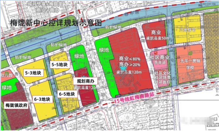 根据规划,梅陇板块主要将包括22幅经营性用地,其中15幅为商办混合用地,总建筑面积约147万㎡;另外7幅为住宅用地,总建筑面积约38万㎡。