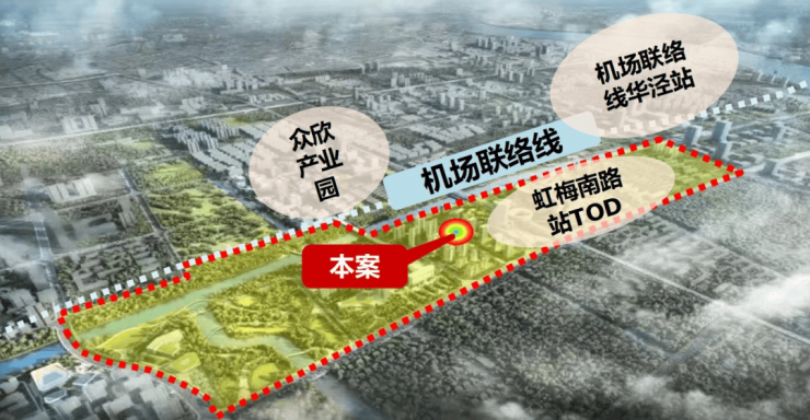 与朗拾花语1站之差的机场联络线华泾站上盖:用地面积约139.4万㎡,地上总开发规模约67.5万㎡,其中商办面积达到了约47.8万㎡,未来也将成为热门商业地标。