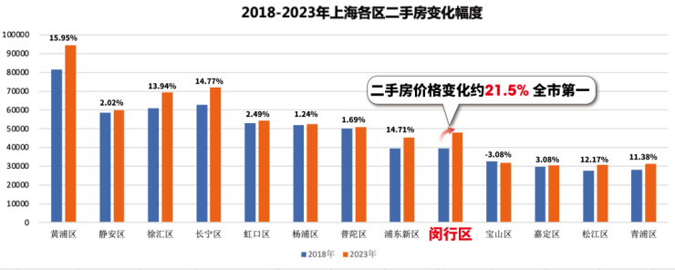 另外,闵行区的二手房流通速度、二手房变化幅度,也都是全市更强的那一个。