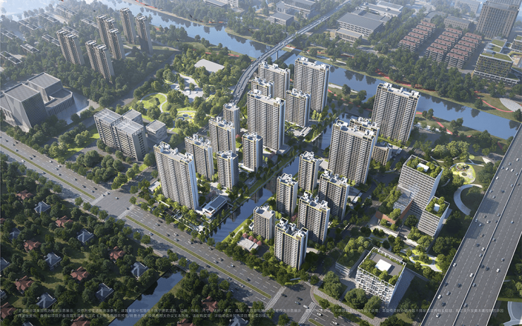 整个社区被一个T字型的水系贯穿,让社区的每一户都能看见河景。依水而居,静谧私密。