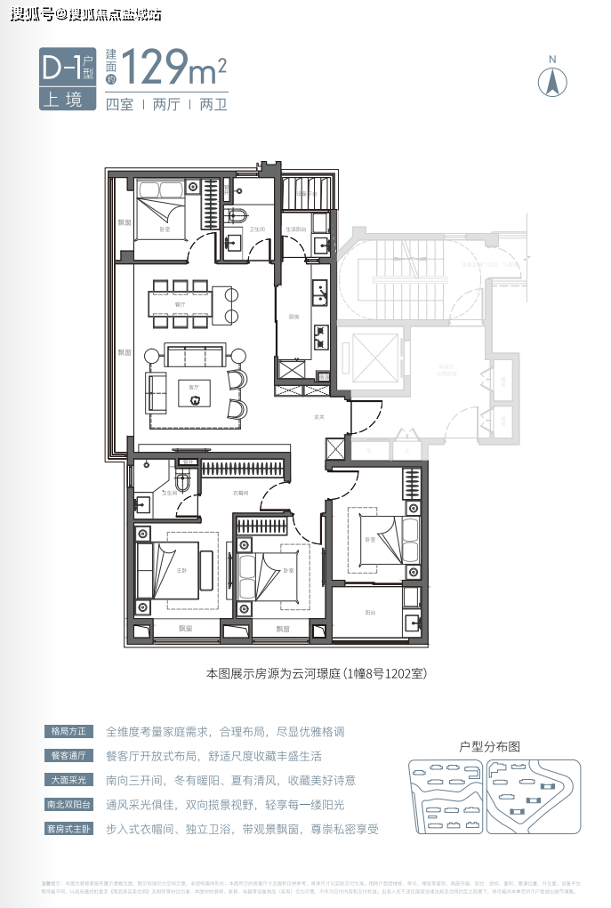 总体来看,这样一套约129平的户型做到四房两厅两卫,做到市面上极度稀缺的边厅设计,采光面、景观效果都极佳。户型整体没有浪费面积、利用率高,设计非常合理。
