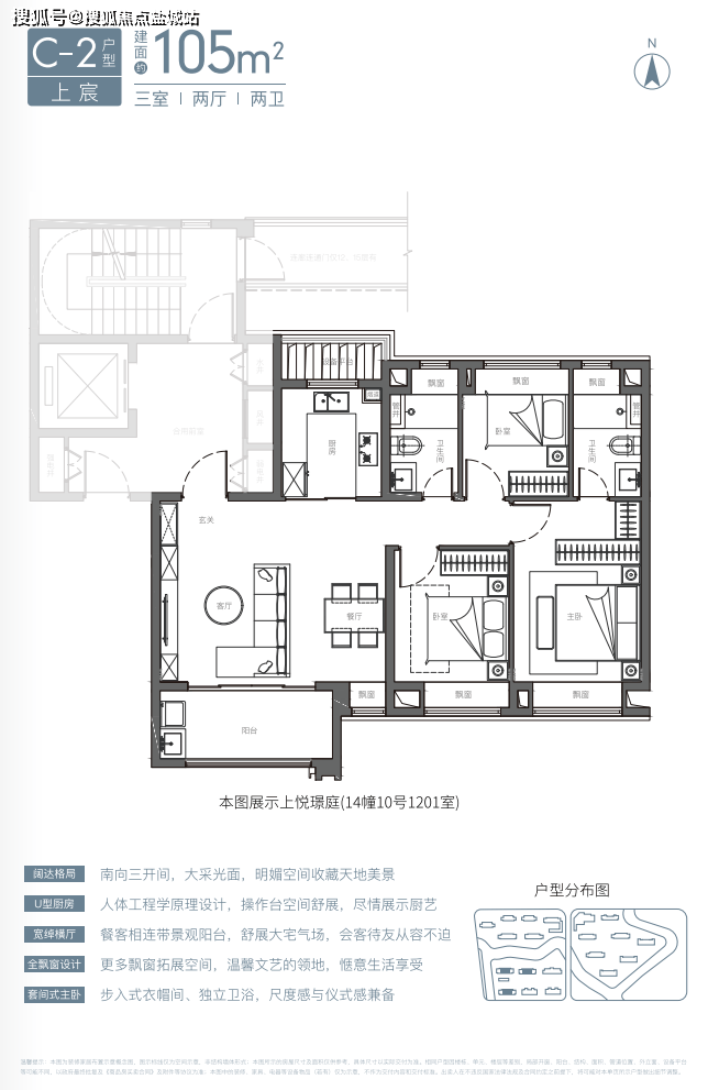 建面约105㎡3房2卫有两种风格(宽厅、竖厅),尤其是宽厅户型,设计格外惊艳。