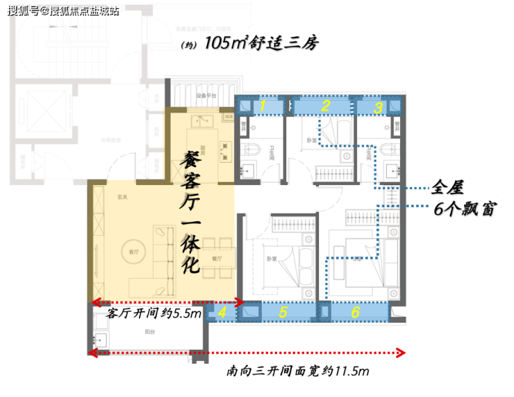 优越的窗墙比,可以最大限度将优美的景观纳入眼帘;南向三开间面宽更是达到了约11.5米,可以说市场同户型面积段产品很难做到这样极致化;功能房间以舒适度为导向服务生活,尺度均做到了当下主流产品水平之上;并且全屋附赠6处飘窗,高附加值令人心动。