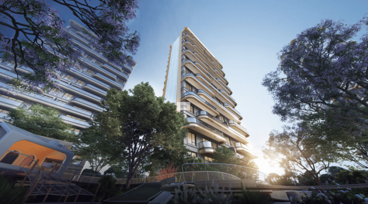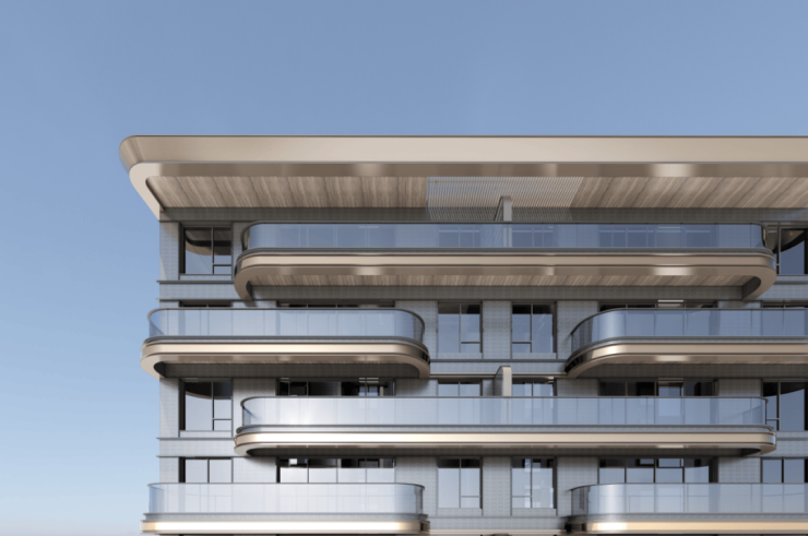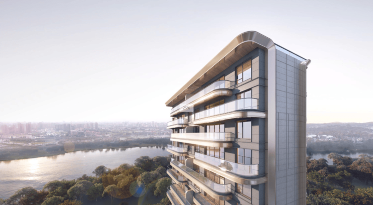 匠心雕琢细节,只为呈现极致之美。范一锋介绍,突破性创造出超现代的艺术立面,采用弧形的香槟金色铝板,搭配LOW-E玻璃幕墙,形成一种浮光跃金的美好景象。设置环幕式的景观阳台、全屋落地窗、270度三面开窗采光,层高达到3.15-3.4米,并且全部配备系统门窗,预留地暖、中央空调等。