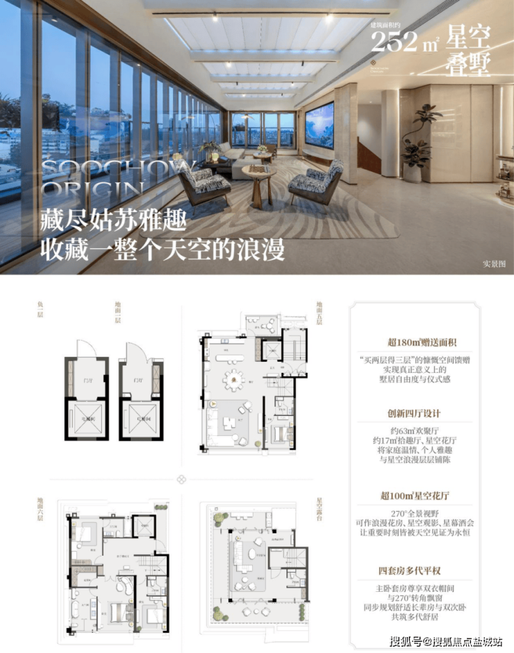 星空花厅创新:超100㎡顶层空间,搭配270°全景视野,突破传统屋顶局限,创造星空下的浪漫生活场景。